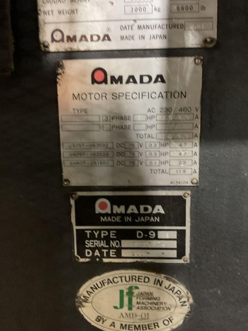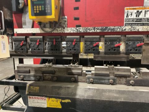 Equipped with an Amada NC9-EXII CNC control interface and Merlin backgauge system.